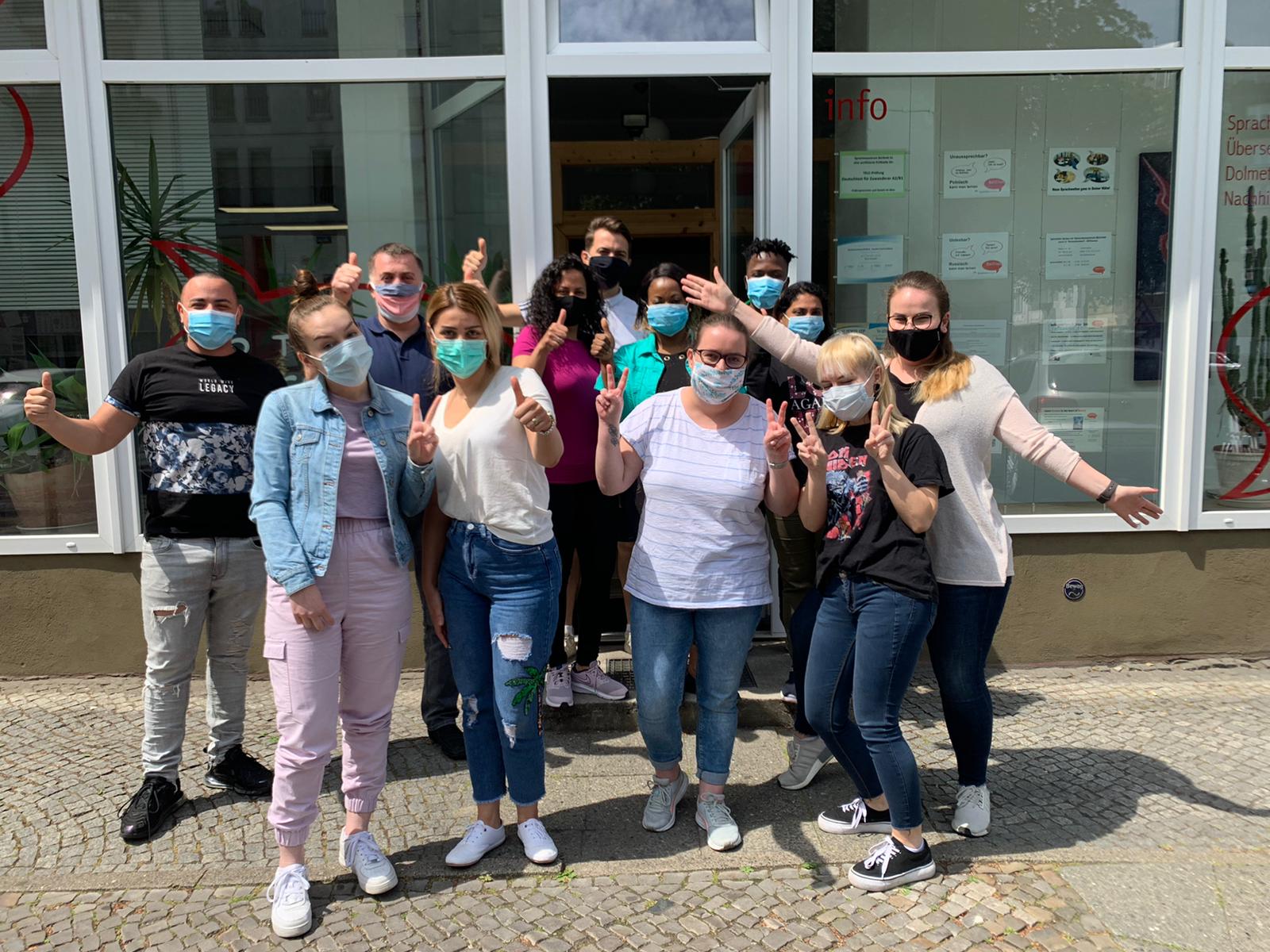 JP: Das hat sich so ergeben. Tatsächlich ist es mein Steckenpferd, über Sprache bzw. Sprache lernen zu arbeiten. Ich mache das sehr gerne und merke in der Zusammenarbeit im Team, z.B. auch mit unseren Praktikant*innen, dass es einen Unterschied macht, ob man gewohnt ist, langsamer zu sprechen. Am Anfang ist mir das auch sehr schwer gefallen. Oder dass ich eben manchmal bestimmte Konstruktionen sofort im Kopf überprüfe, kennen sie z.B. im Level A2 den Konjunktiv, welche Nebensätze verstehen sie, welche Wörter könnten sie kennen, wenn es um bestimmte Sachverhalte geht. Manchmal benutze ich zwei Wörter hintereinander, die synonym sind. Trotzdem gibt es auch immer wieder Überraschungen. Insofern ist es von großem Vorteil, dass immer wieder dieselben Lehrer*innen von euch kommen und wir miteinander vertraut sind. Sie unterstützen mich, vermitteln und erklären Wörter. Sie kennen die Gruppen und auch deren Kenntnisstand natürlich besser als ich.